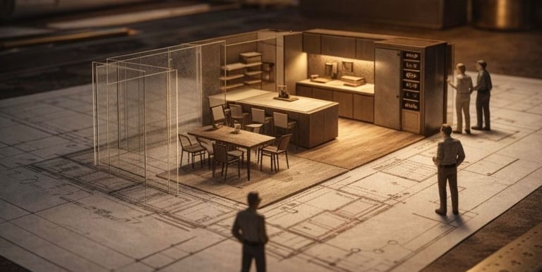 اعتمدنا منذ البداية على الدمج بين الخبرة الحرفية والتقنيات الحديثة، فطوّرنا أسلوب عمل متكامل يبدأ بفهم احتياجات العميل ونمط حياته، ثم تحويل الأفكار إلى تصاميم ثلاثية الأبعاد دقيقة تتيح تصور المشروع قبل التنفيذ، لضمان وضوح التفاصيل واتخاذ القرار بثقة.